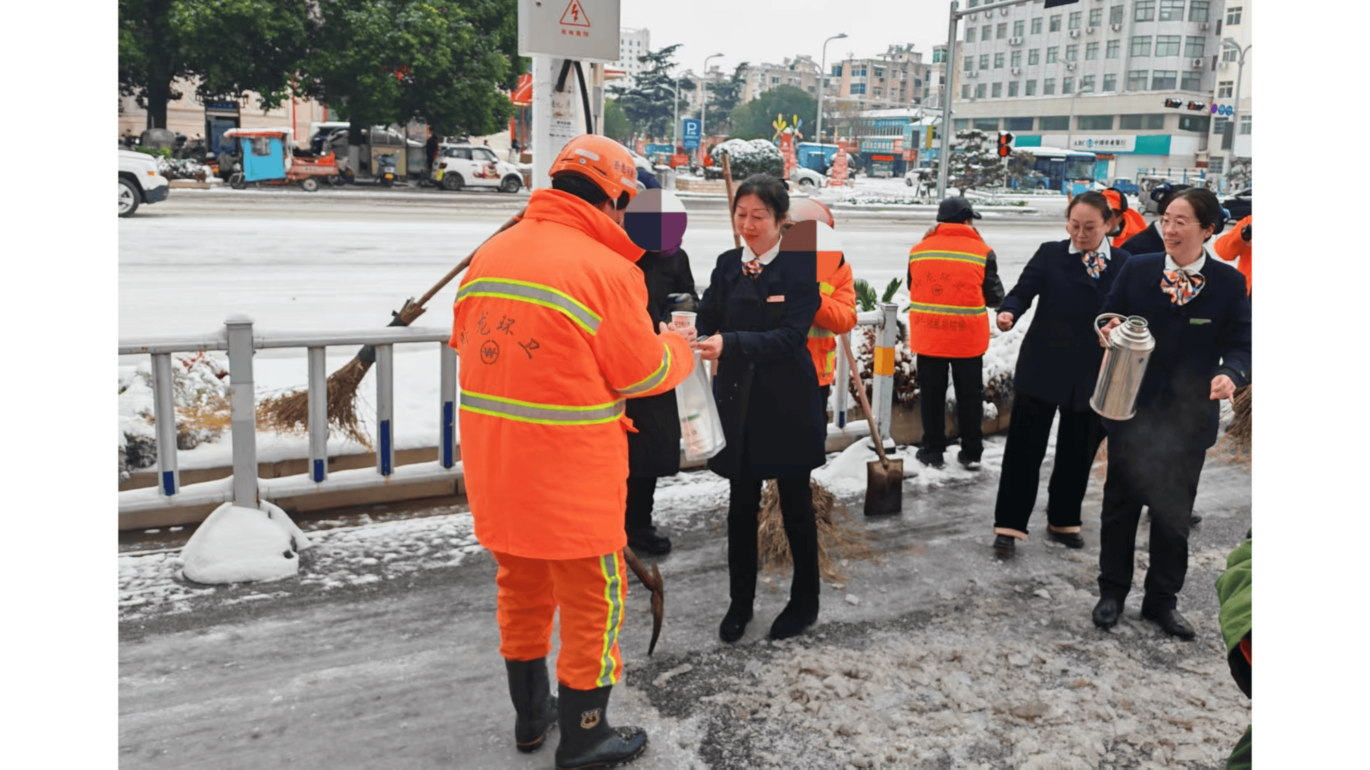 “师傅,雪天路滑,您慢走,注意脚下!”“阿姨,台阶有冰,扶好扶手更安全!”一声声暖心叮咛与一次次铲雪动作同频共振,让为民服务从“清扫路面”延伸到“温暖人心”,用实干为群众筑牢冬季出行的“安全防线”。