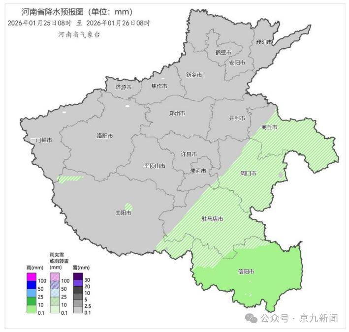 图1 2026年1月25日8时-26日8时河南省降水量预报
