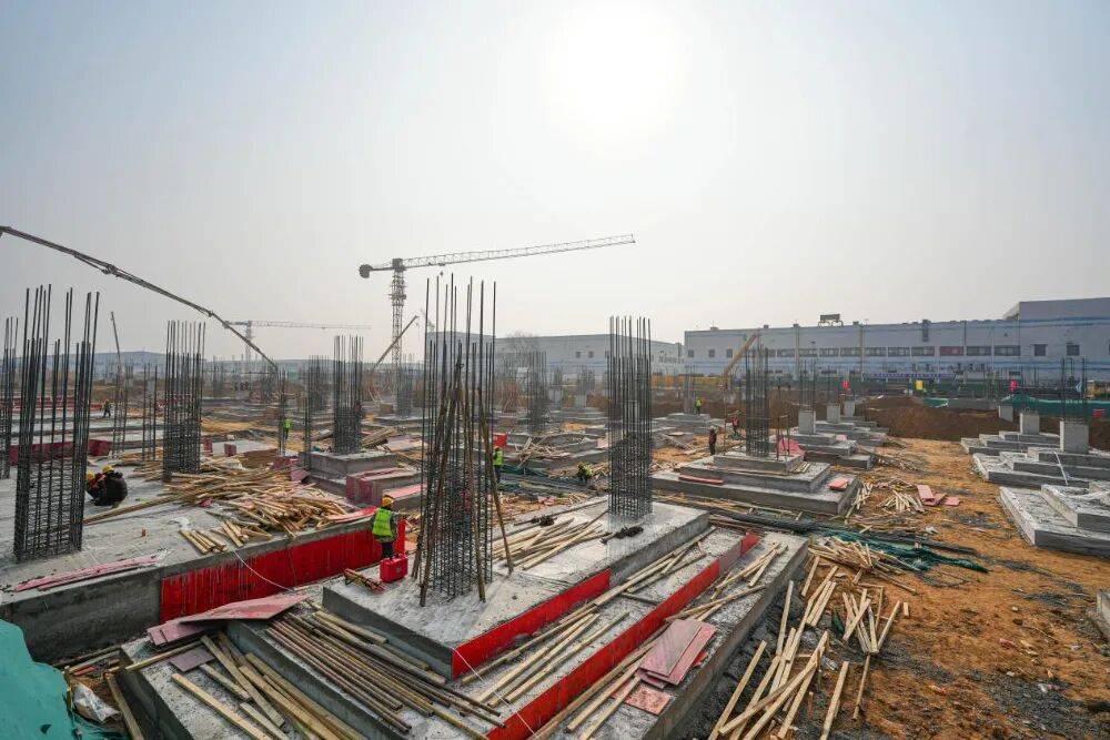 走进富士康扩产项目一标段现场,这里塔吊林立,机器轰鸣,一派热火朝天的施工场景,工人们正争分夺秒抓紧建设。科创集团建发公司项目负责人李任乐表示,该项目将新建2栋合计建筑面积约10万平方米厂房,以及配套餐厅,用于优化富士康生产布局,预计今年5月可交付使用。