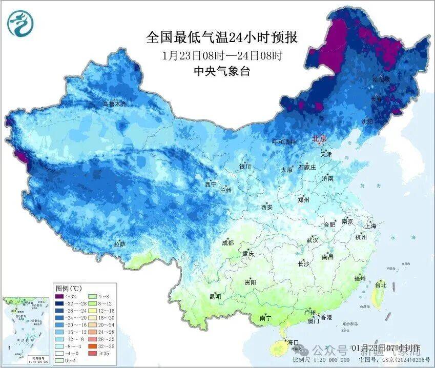 全疆基本被寒冷的蓝色包围