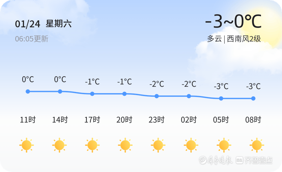 今天是1月24日,农历十二月初六,威海市迎来多云天气,气温介于-3℃到0℃之间,西南风2级,空气湿度为47%。PM2.5浓度为18,空气质量等级为优。良好的空气质量为市民出行提供了舒适环境,但较低的气温仍需注意保暖,建议市民外出时增添衣物,同时注意防范路面结冰带来的滑倒风险。