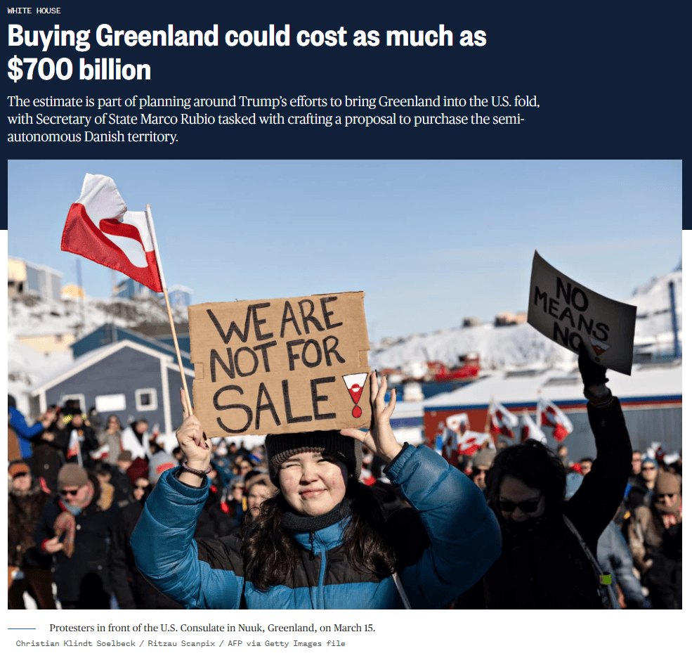 - 所谓“美国即将敲定高达7000亿美元的现金收购方案,从丹麦手中直接购买格陵兰岛”的说法不可信。“7000亿美元”这一数字仅为“学者和前官员”做的成本估算,尚未以任何书面形式获得美国国会的认可。