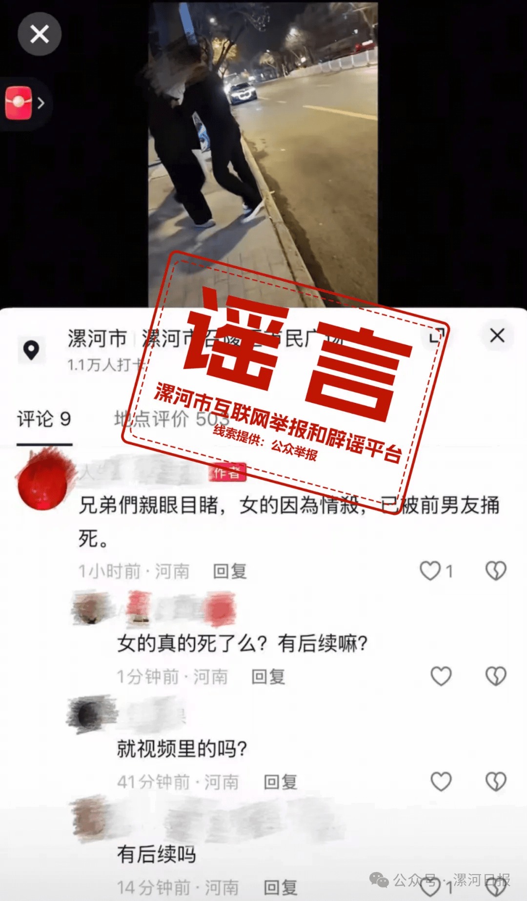 谣言六 网传“漯河一女子在街上被前男友捅死”?