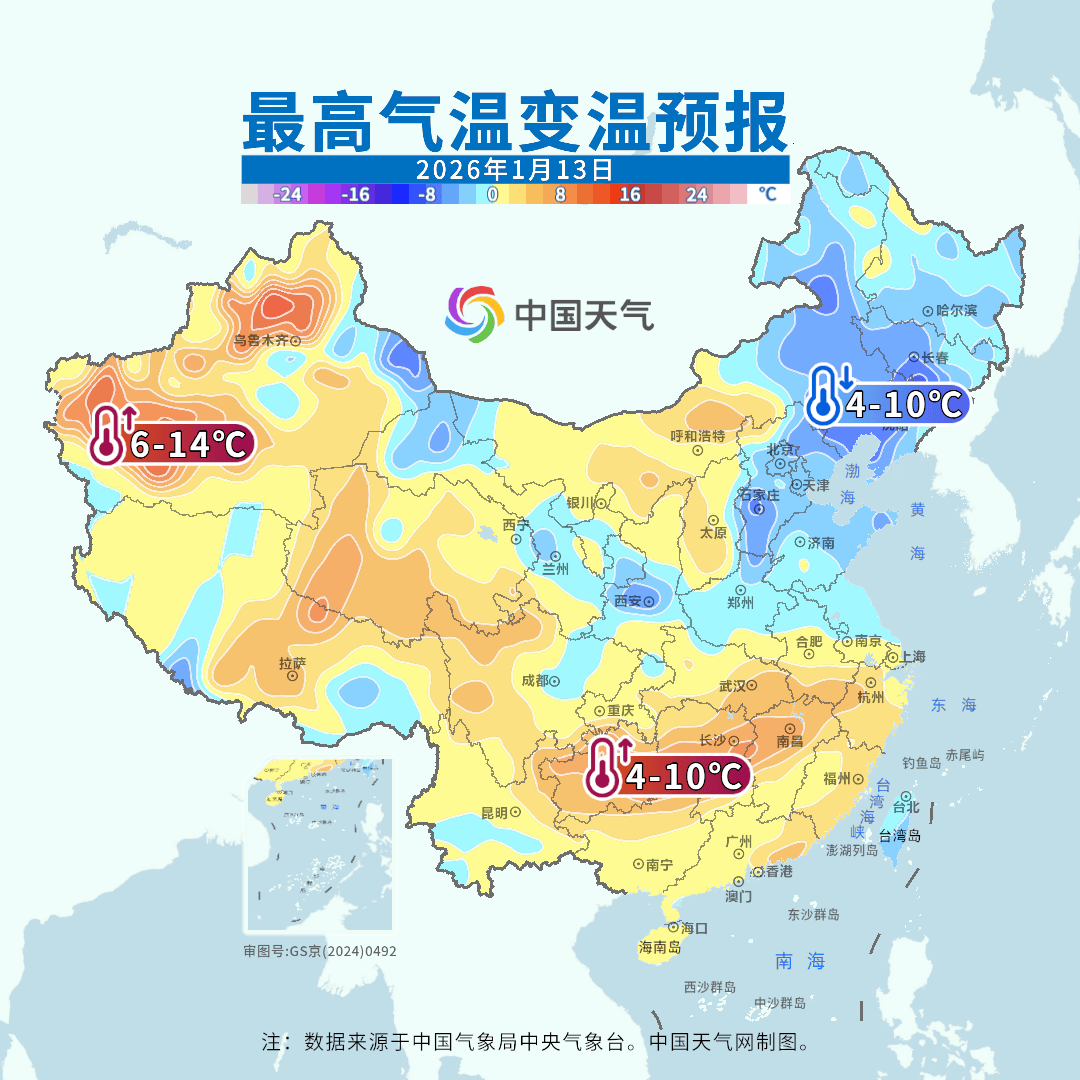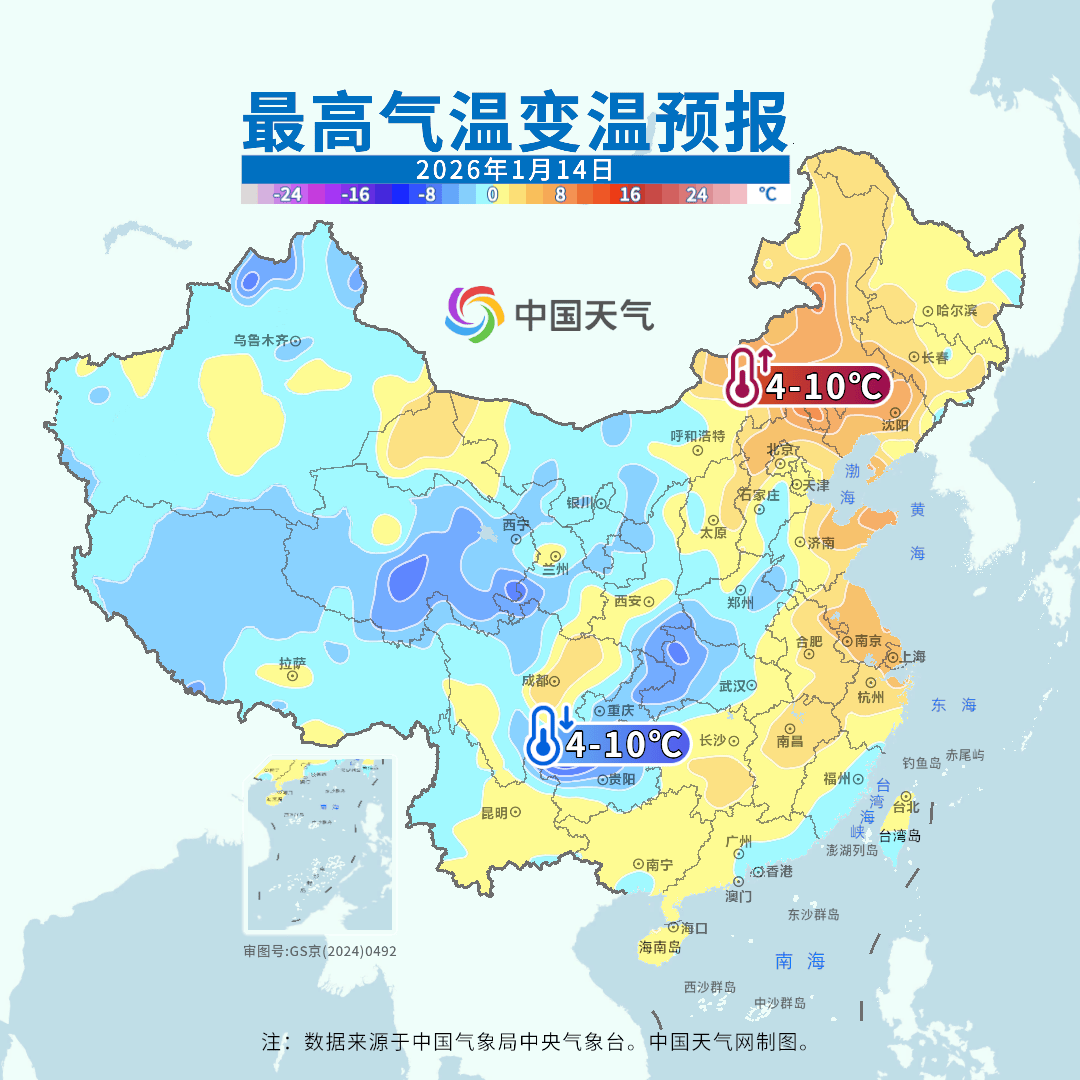 第二股冷空气(14日-16日)影响的主要也是北方。14日-15日,气温的波动也很频繁。