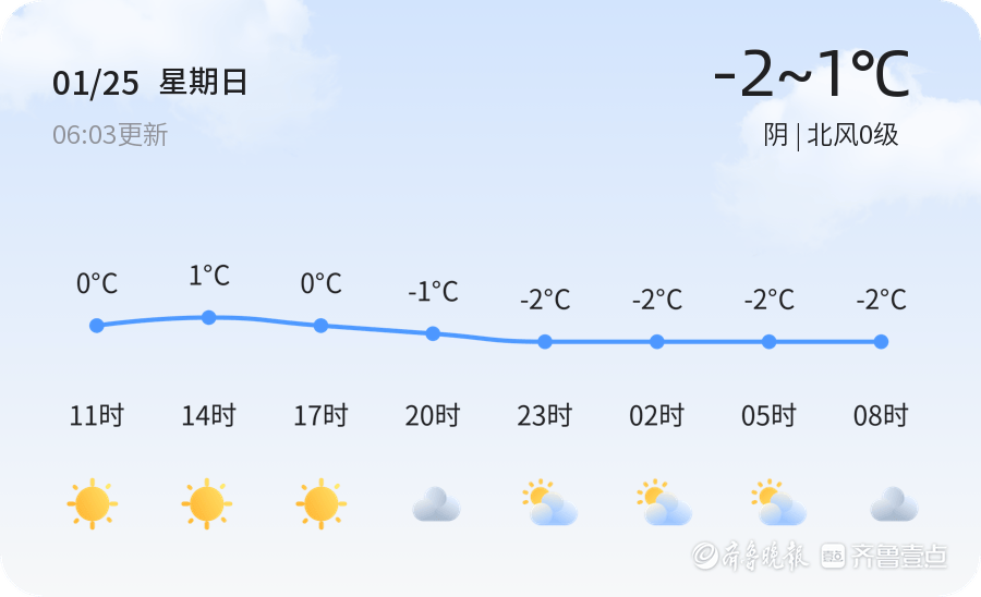 今天是2026年1月25日,农历十二月初七,星期日。潍坊市迎来阴雨天气,气温较低,全市各区的天气状况基本一致,均为阴天,气温在-4.5度左右,最高气温1度,最低气温-2度,北风0级,空气湿度为73%,PM2.5指数为109。