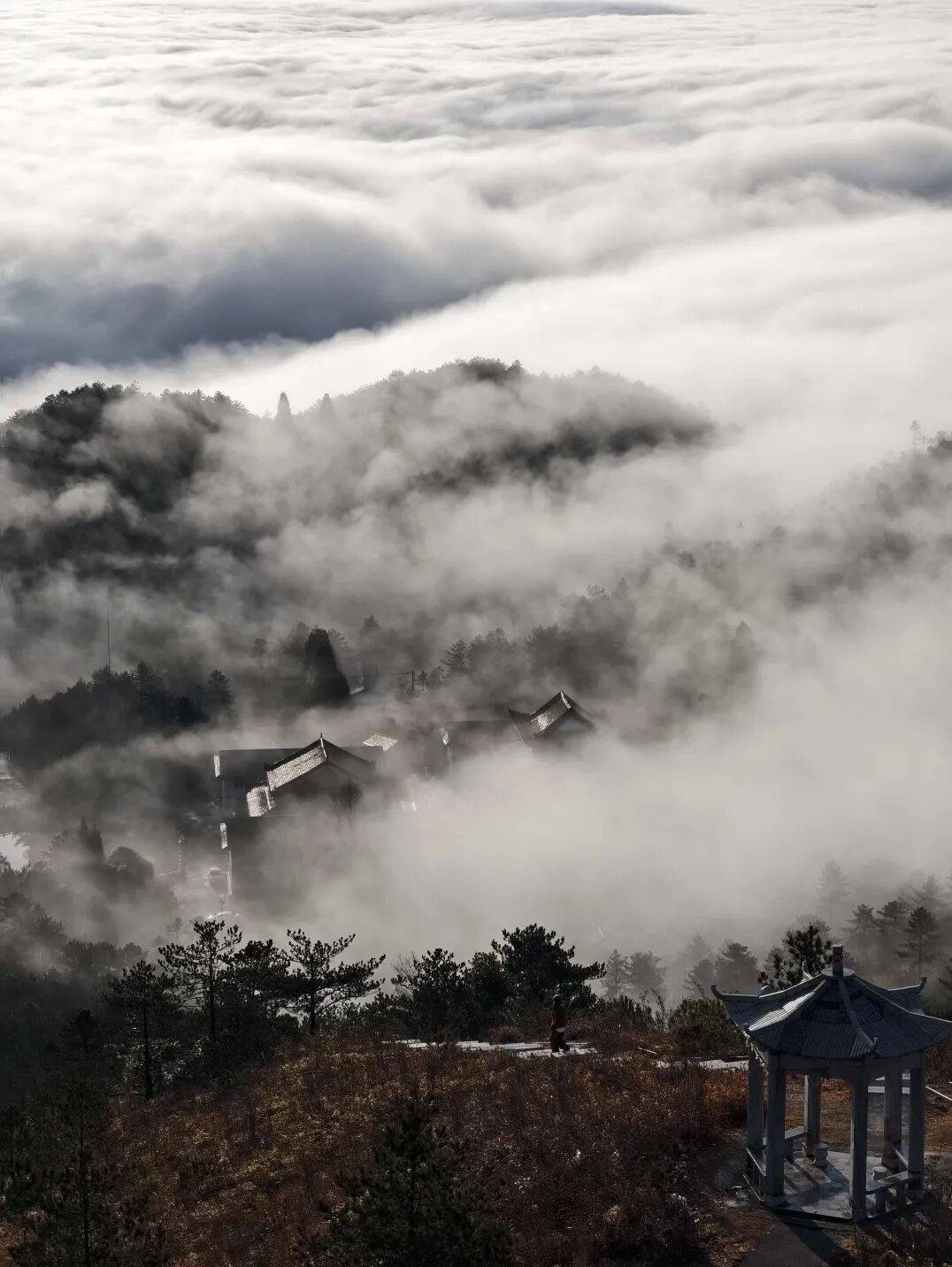 1月23日清晨时分,受强冷空气影响,新罗区雁石镇莲台山迎来了绝美的日出云海景观。漫山的峰峦叠翠隐于云涛,金辉霞光苍松逸秀在云海中翩然舒展,宛如水墨晕染的天上仙境。(图/文:汤聪 高天)