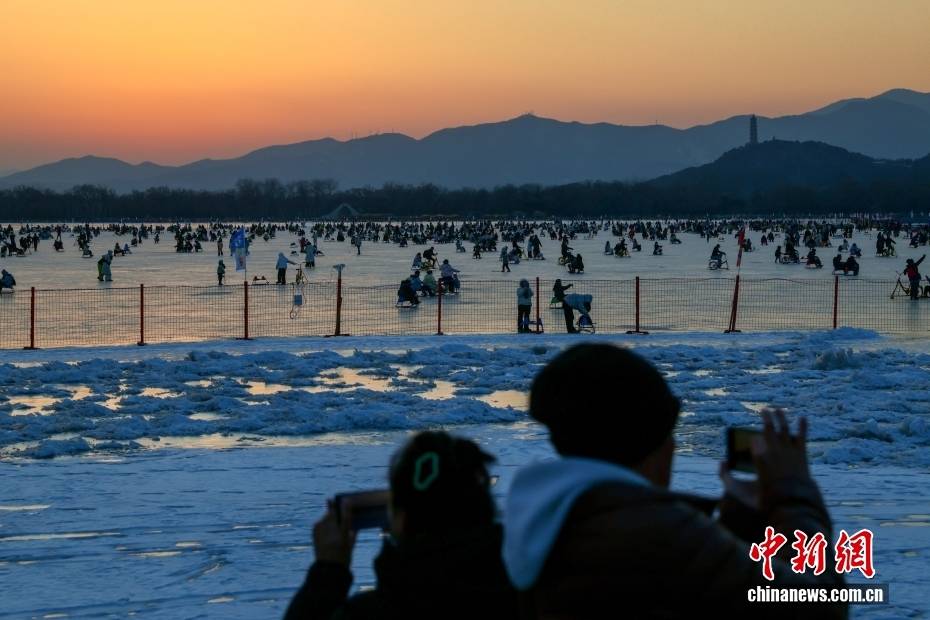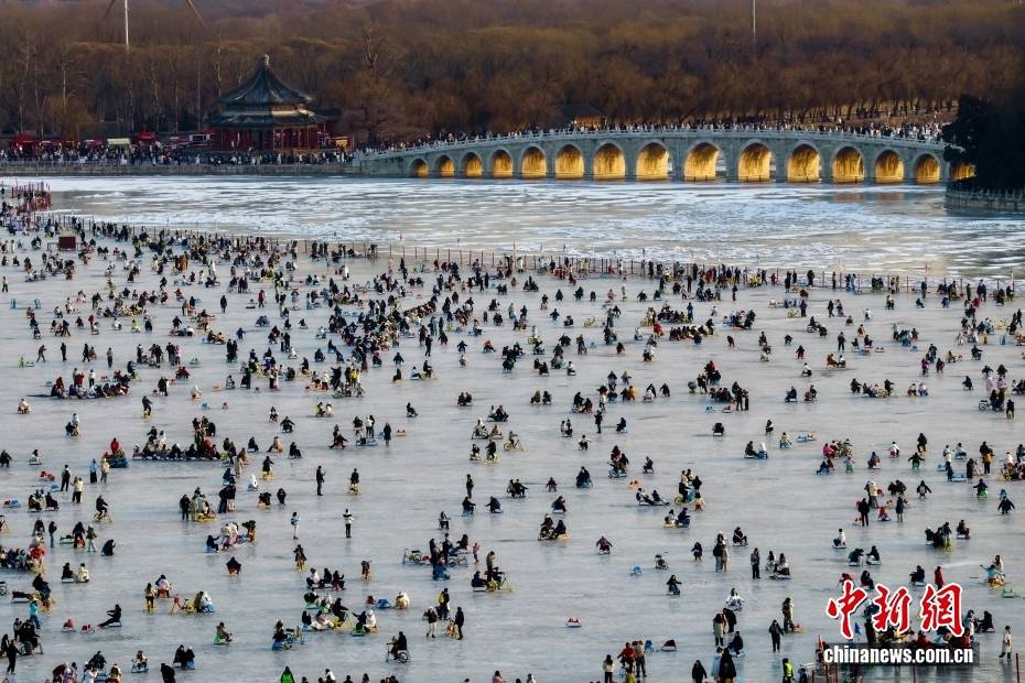1月24日,北京天气晴好,颐和园昆明湖冰场游人如织,民众尽享冬日冰上乐趣。中新社记者 易海菲 摄