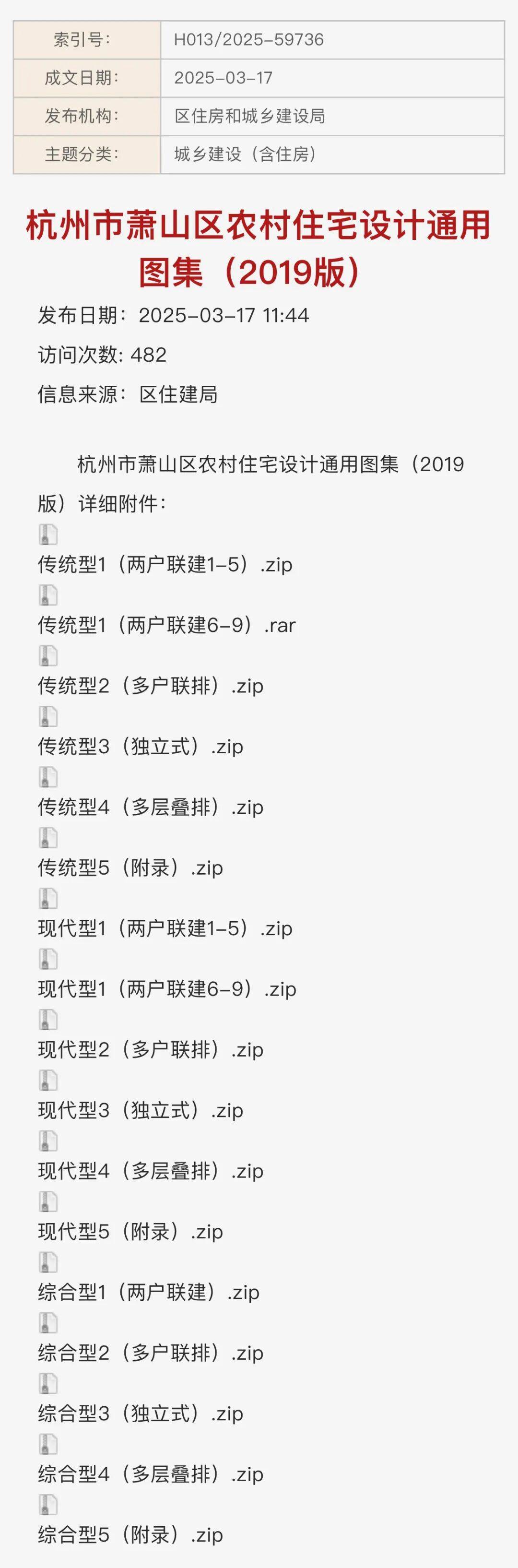 萧山区农村住宅设计通用图集(2019版)由区住建局于2025年3月在萧山区政府网更新发布。