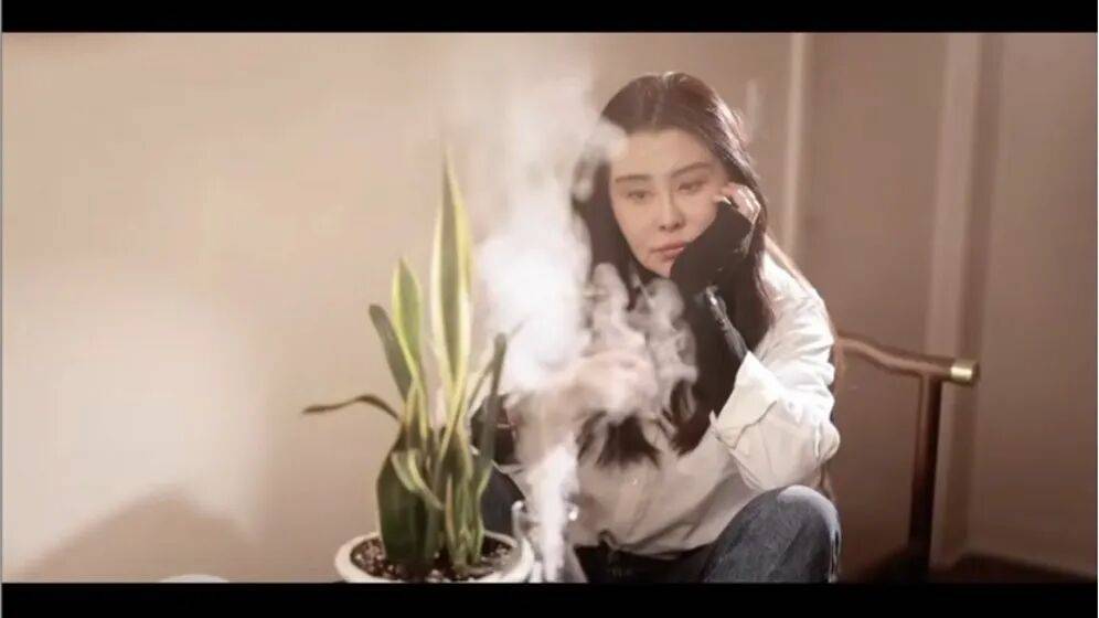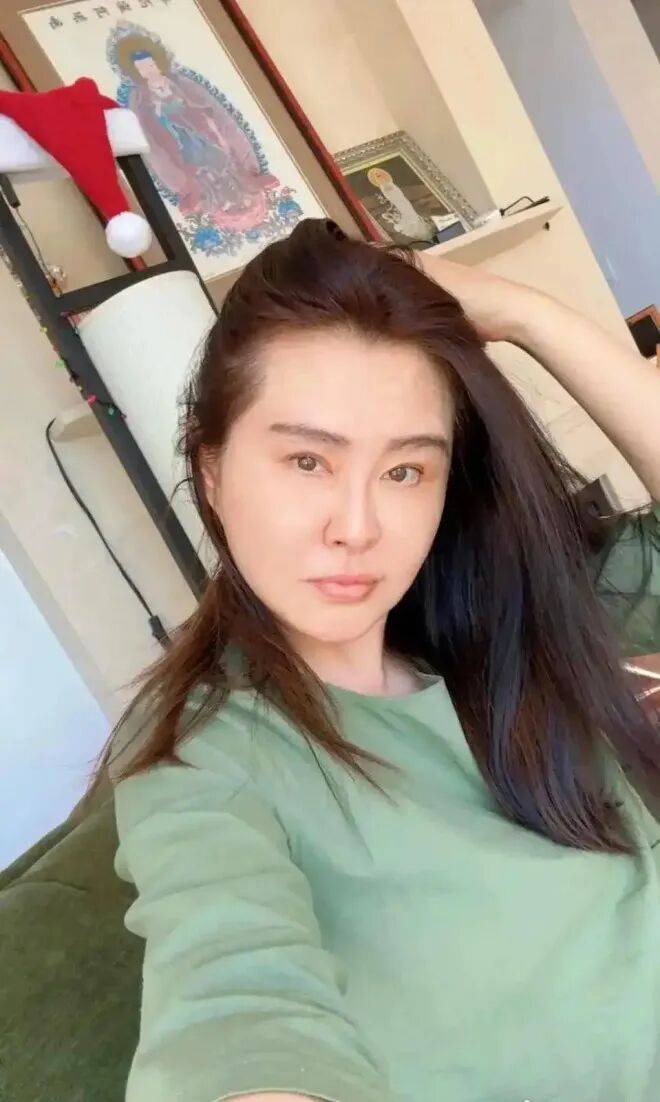 画面里的她,身穿简单休闲服,坐在室内沙发上,没有精致妆容,也没有刻意打光,但那种刻在骨子里的气质依然非常明显。她时不时抬手拨弄那一头标志性的浓密长发,动作松弛又自然。