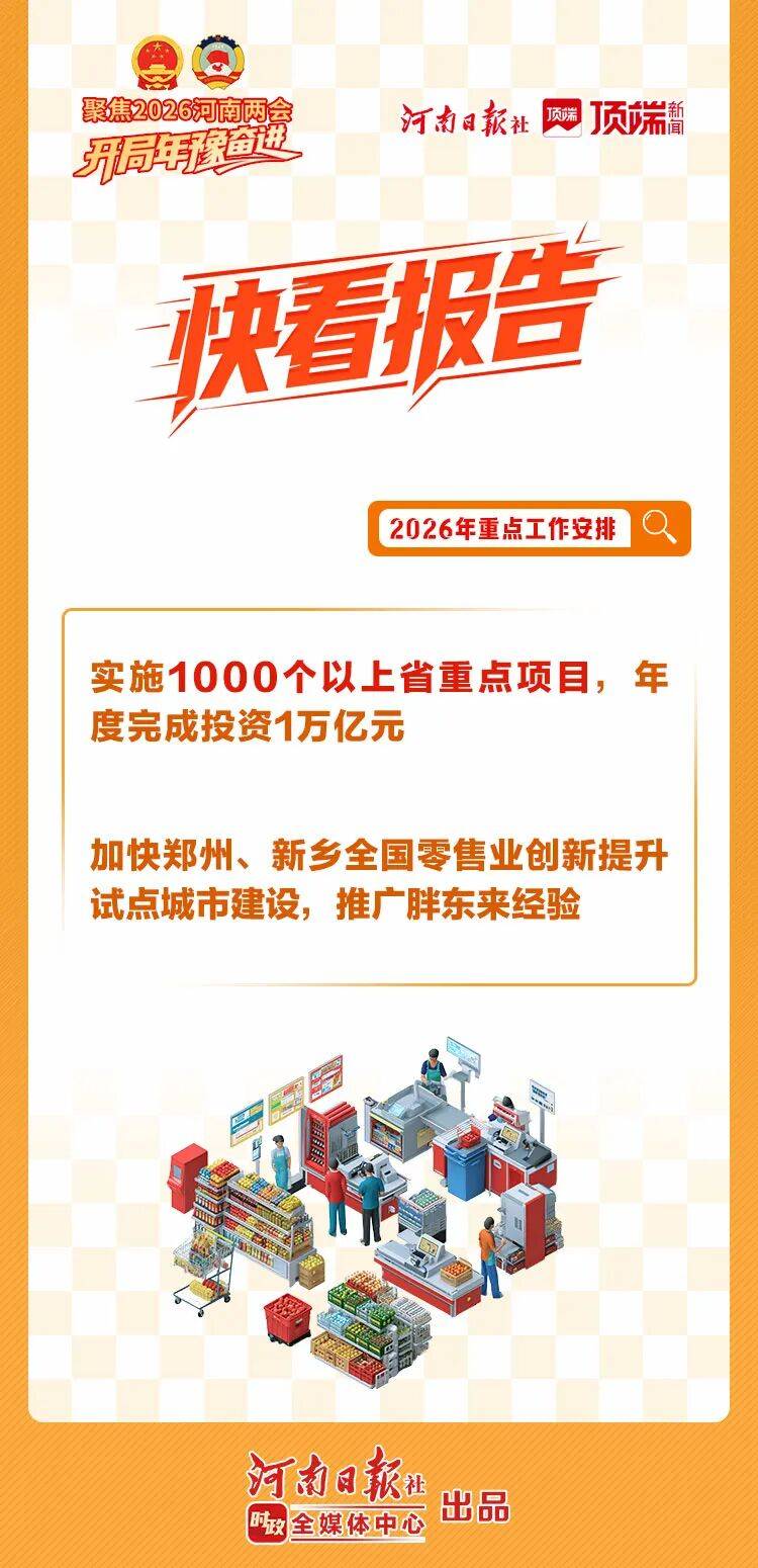 1月26日,河南省十四届人大四次会议开幕,省长王凯作政府工作报告。河南日报梳理核心要点,带你“快看”报告。