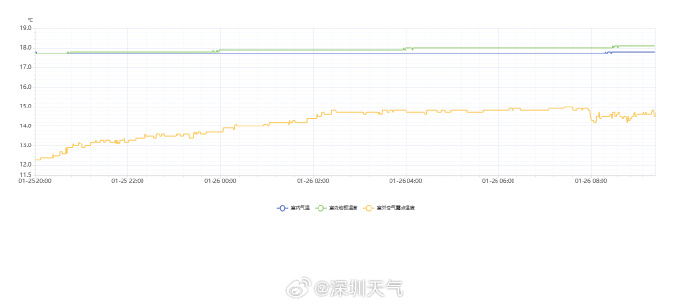 深圳新闻网2026年1月26日讯(记者 张小臣 实习生 苗梦翟)记者从深圳天气了解到,当室外露点温度≥室内物体温度时,有利于回南天的形成,但从回南天风险监测上看,空气露点温度与地板温度相差较大,所以回南天风险低。