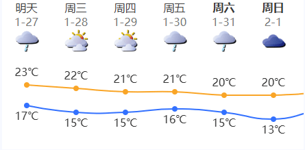 27日阴天间多云,有小雨,早晚有轻雾,偏北地区局地背阴处有出现轻微回南天的可能,最低气温继续回升;