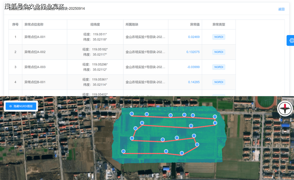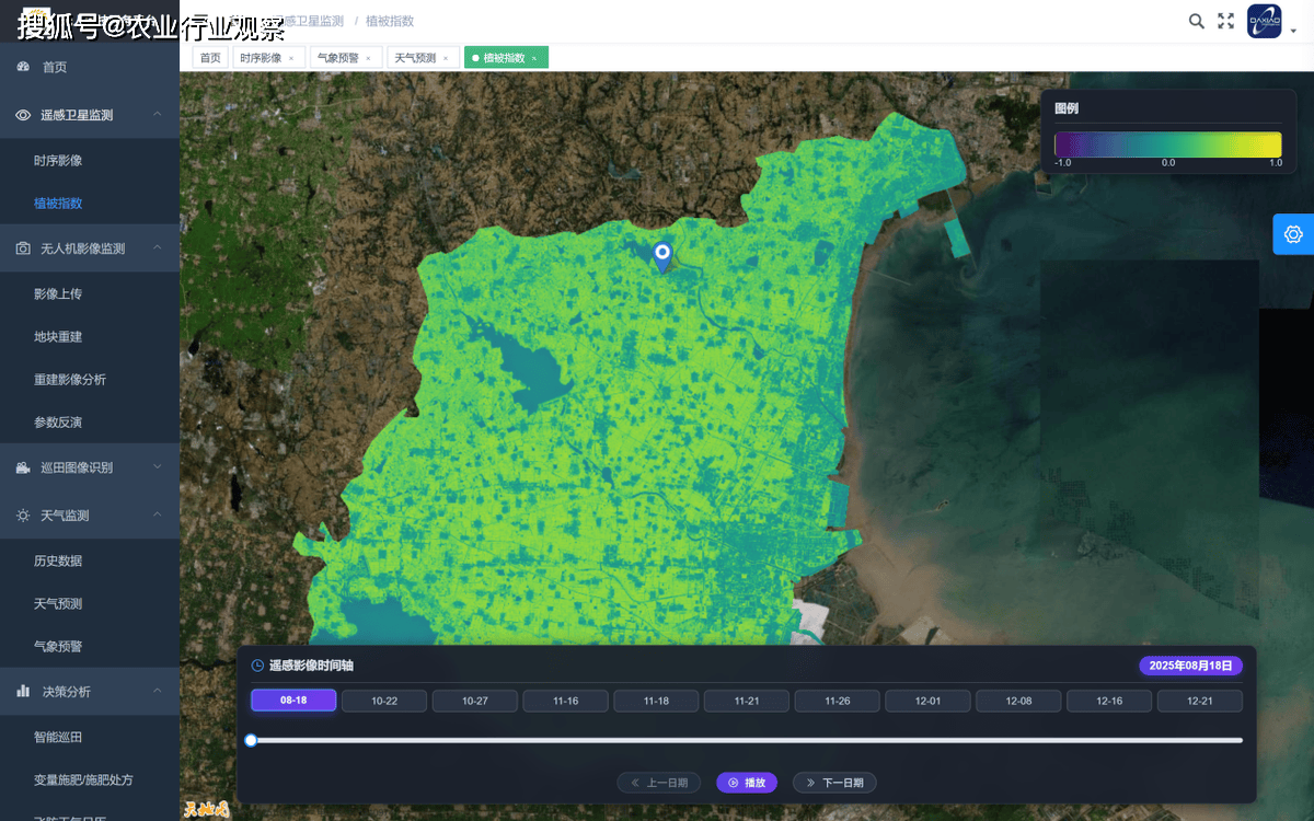 图:无人农技服务平台的卫星遥感NDVI分析模块
