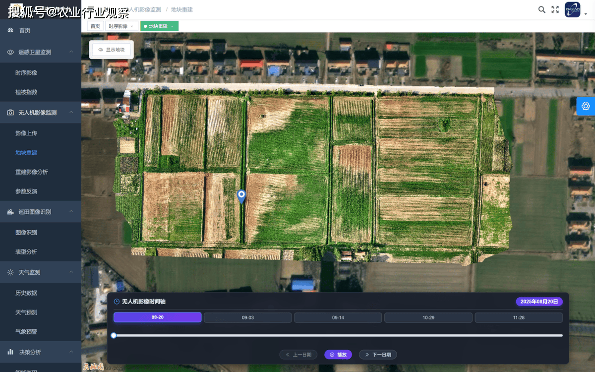 - 无人机航拍精准解析:支持无人机航拍影像一键上传,平台可快速完成地块三维重建、重建影像智能分析、核心参数反演,精准识别作物病虫害、缺素、旱涝等异常情况,精度可达厘米级,相当于为农田装上“火眼金睛”,提前发现潜在问题,避免损失扩大。