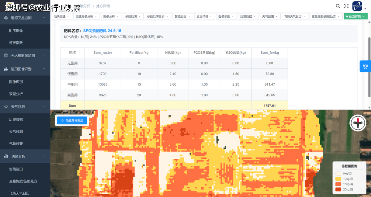 图:无人农技服务平台的AHA变量施肥/施肥处方模块