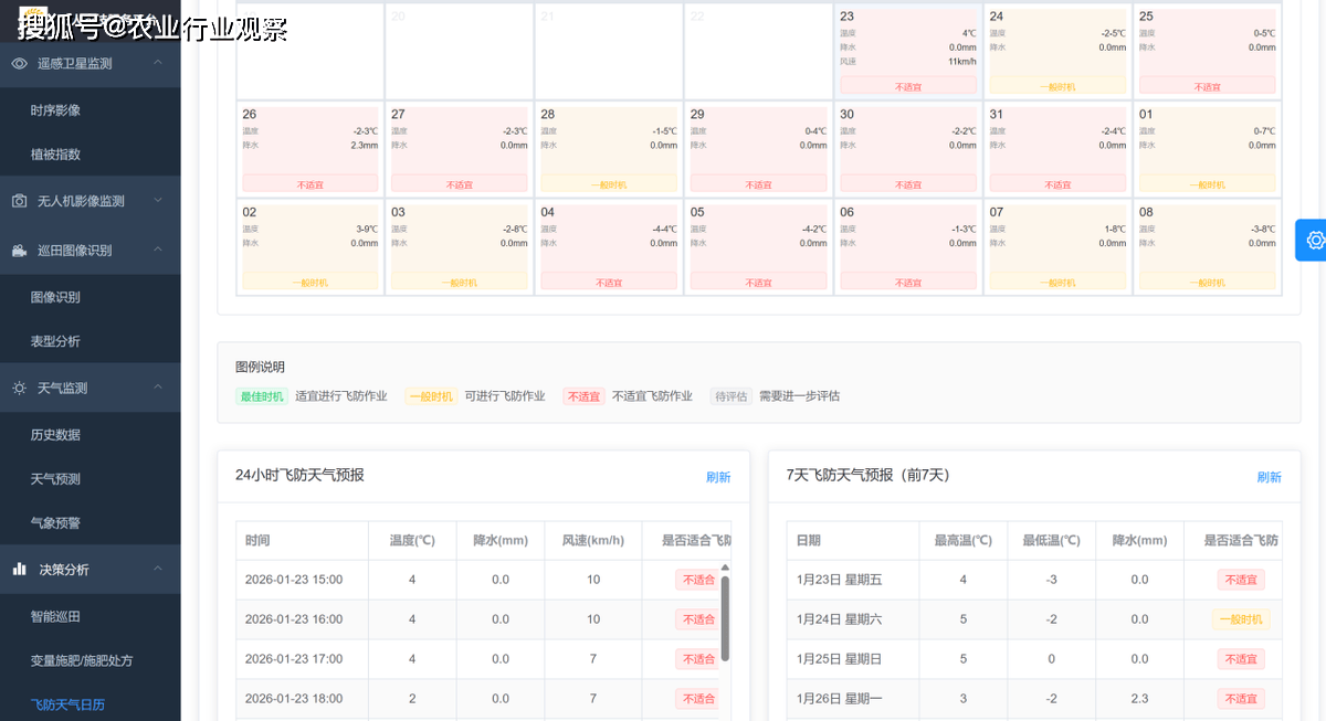 平台可自动生成飞防天气日历,精准标注适宜飞防的时间段,避开不利天气,提升飞防效果;结合AHA算法模块,生成精准的施肥处方图,指导无人机或智能农机“按方抓药”,实现变量施肥,进一步降低成本、提升产量;同时,通过分析作物生长数据、环境数据、历史产量数据,实现产量精准预测,为农产品销售、仓储规划提供科学依据,提前锁定收益。