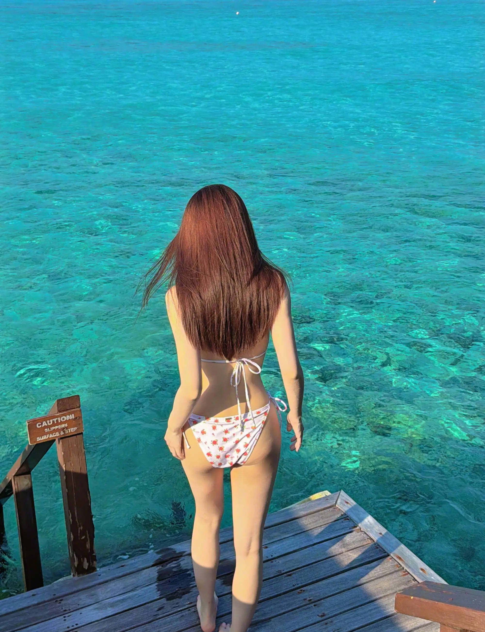 徐璐侧坐池边,望向大海。