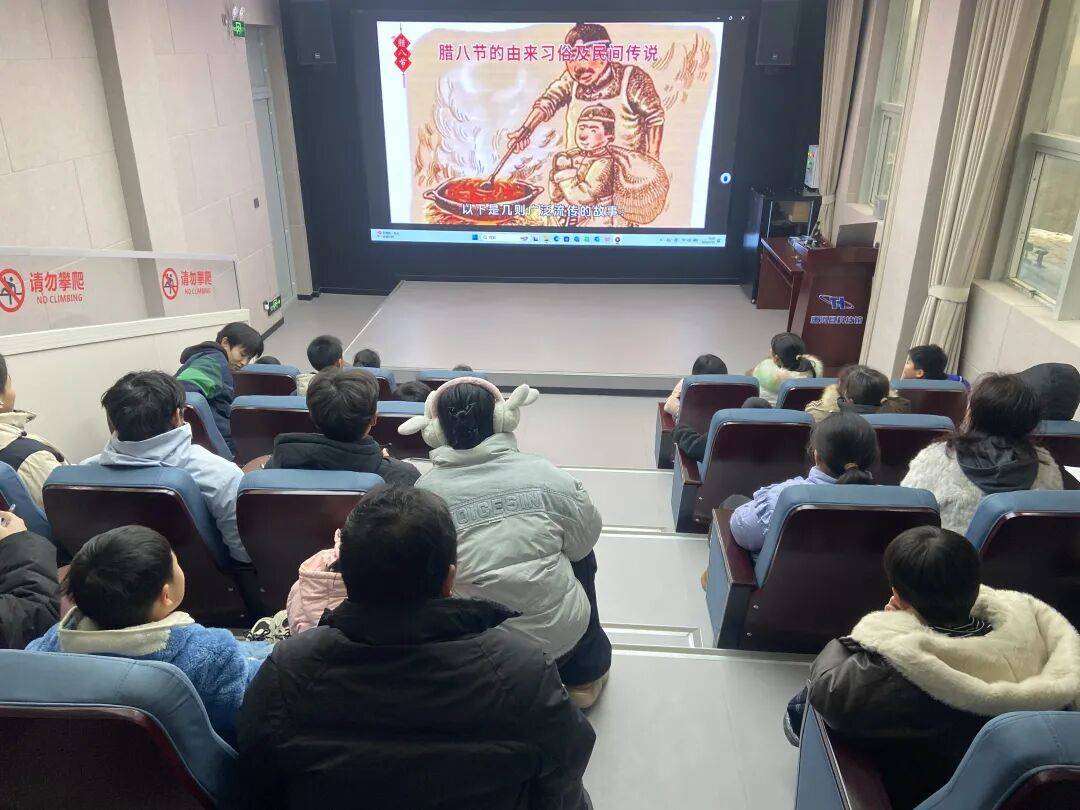图书馆的老师通过图片绘声绘色地讲述着腊八节的古老传说与喝腊八粥、腌腊八蒜等趣味习俗,孩子们听得津津有味!