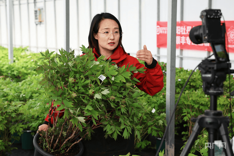 直播销售“反季牡丹” (央广网发 王亚峰 摄)
