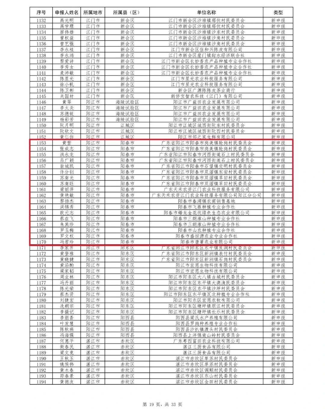 新申报名单。 受访者 供图