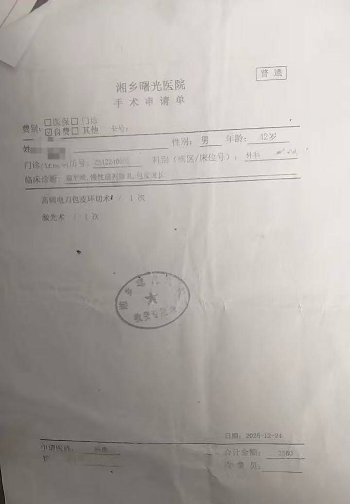 “我现在只想曝光此事,不需要医院赔偿。”1月26日,周先生气愤地告诉澎湃新闻(www.thepaper.cn),2025年12月,他在湖南湘乡曙光医院做完包皮术后输液时,发现所输碳酸氢钠注射液已过期,双方多次协商及卫健部门行政调解均未果。