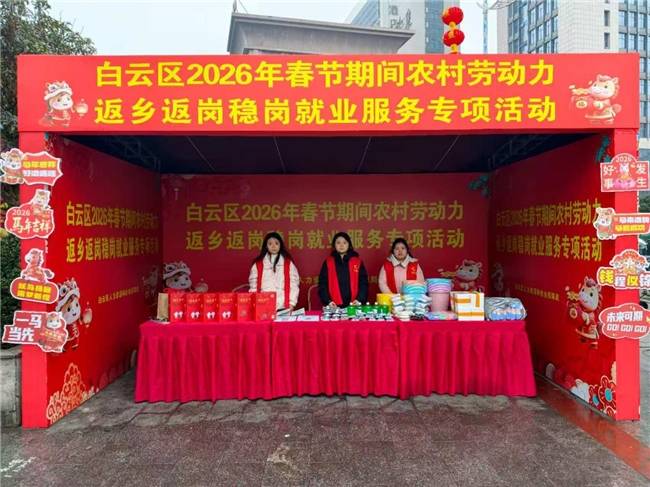 为深入贯彻落实省委、省政府关于促进高质量充分就业的部署要求,扎实做好春节期间农村劳动力返乡返岗服务保障工作,1月27日,“白云区2026年春节期间农村劳动力返乡返岗稳岗就业服务专项活动”在白云区澳马步行街正式启幕。