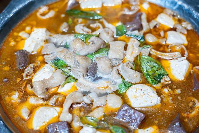 信阳地处豫南,饮食带几分楚地风情。罗山大肠汤便是代表——猪大肠处理得毫无异味,与豆腐、豆芽同炖,辣中带香,肥而不腻。