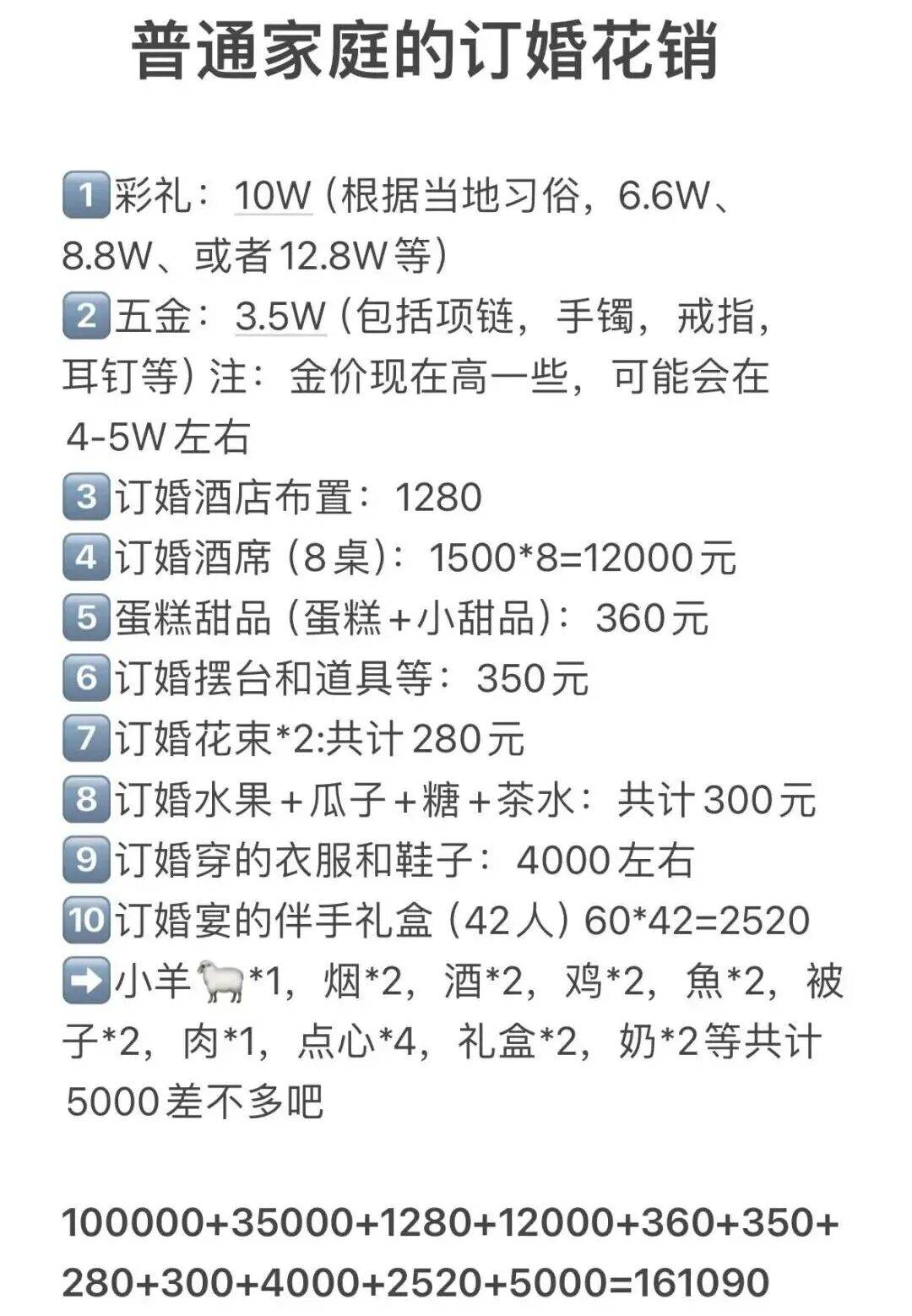 百万的房子、几十万的车子,数十万的彩礼,还有大几万的婚礼,这些巨额花费,让一个普通家庭望而生畏,订婚宴能省则省吧。