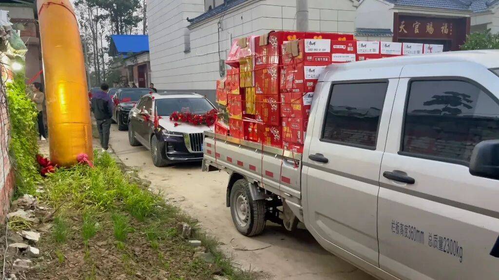 最近这些年短视频风行,网上时有调侃“赈灾式结婚”,用大卡车拉一车花花绿绿的礼品,还有猪啊羊啊,甚为壮观。