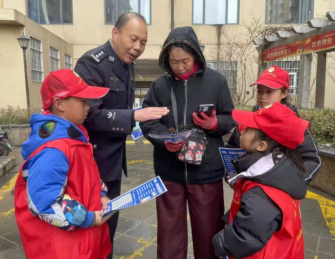 活动现场,民警用通俗易懂的语言,向小志愿者及居民详解网络刷单、虚假购物等高发诈骗手法,提炼“不轻信、不透露、不转账”的“三不”反诈口诀。随后,小志愿者们分组行动,手持反诈宣传彩页深入社区楼栋开展入户宣传。他们化身“反诈小使者”,用稚嫩却坚定的声音,提醒大家警惕陌生来电和可疑链接,遇到问题及时联系警方,将学到的知识转化为守护邻里平安的实际行动。