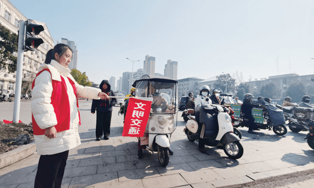 “您好,请等绿灯亮了再过马路。”“阿姨,电动车请走非机动车道,注意安全。”1月26日,城区建设路与人民路交叉口、光武大道与人民路交叉口,身着红色志愿服、手持文明劝导旗的返乡大学生志愿者,成为街头最亮眼的风景线。