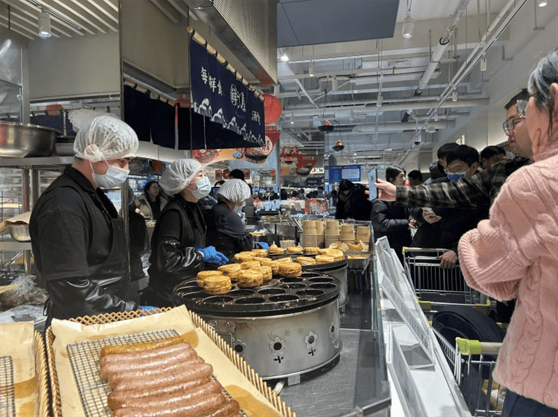 走进淘小胖鲜品馆宝龙广场店,明档厨房升腾的烟火气扑面而来:滋滋作响的现烤羊肉串、热气腾腾的手工大包、香气四溢的各式卤味等。这些元素打破了传统商超冰冷货架的局限,唤醒消费者的体验欲望。