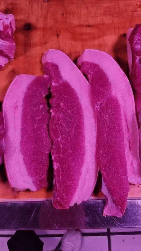 “秸秆变饲料”技术养殖而成的生猪屠宰以后,肉质紧实绵密,口感好、营养与蛋白含量更加丰富。 杨大银/供图