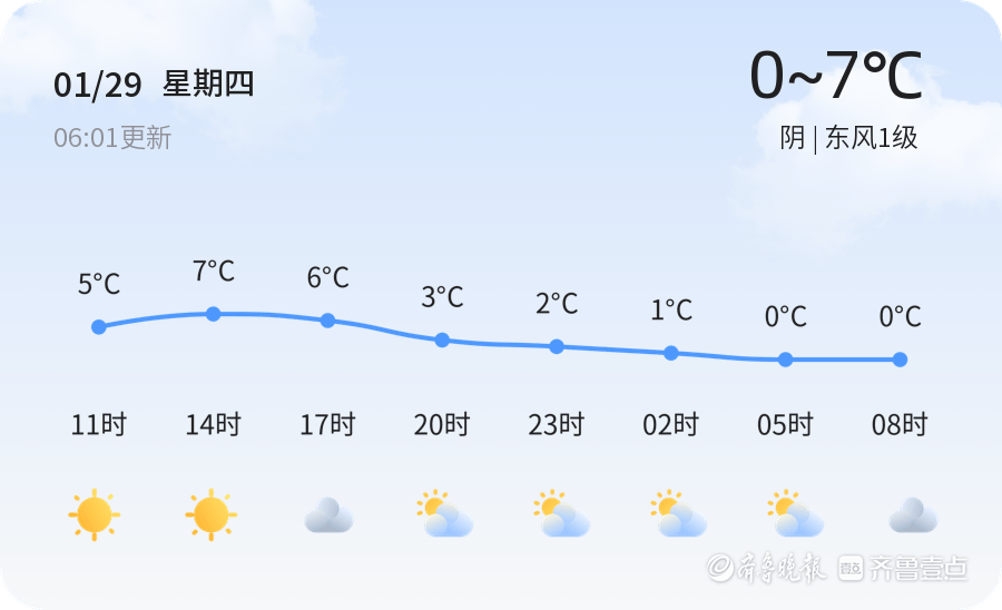 今天是2026年1月29日,农历十二月十一,星期四。枣庄市今日天气阴沉,气温较低,当前温度为-3.8℃,东风1级,空气湿度为86%。今日枣庄各区整体天气状况一致,均为阴天,气温在0℃至7℃之间波动。空气质量良好,PM2.5指数为63,适合户外活动。
