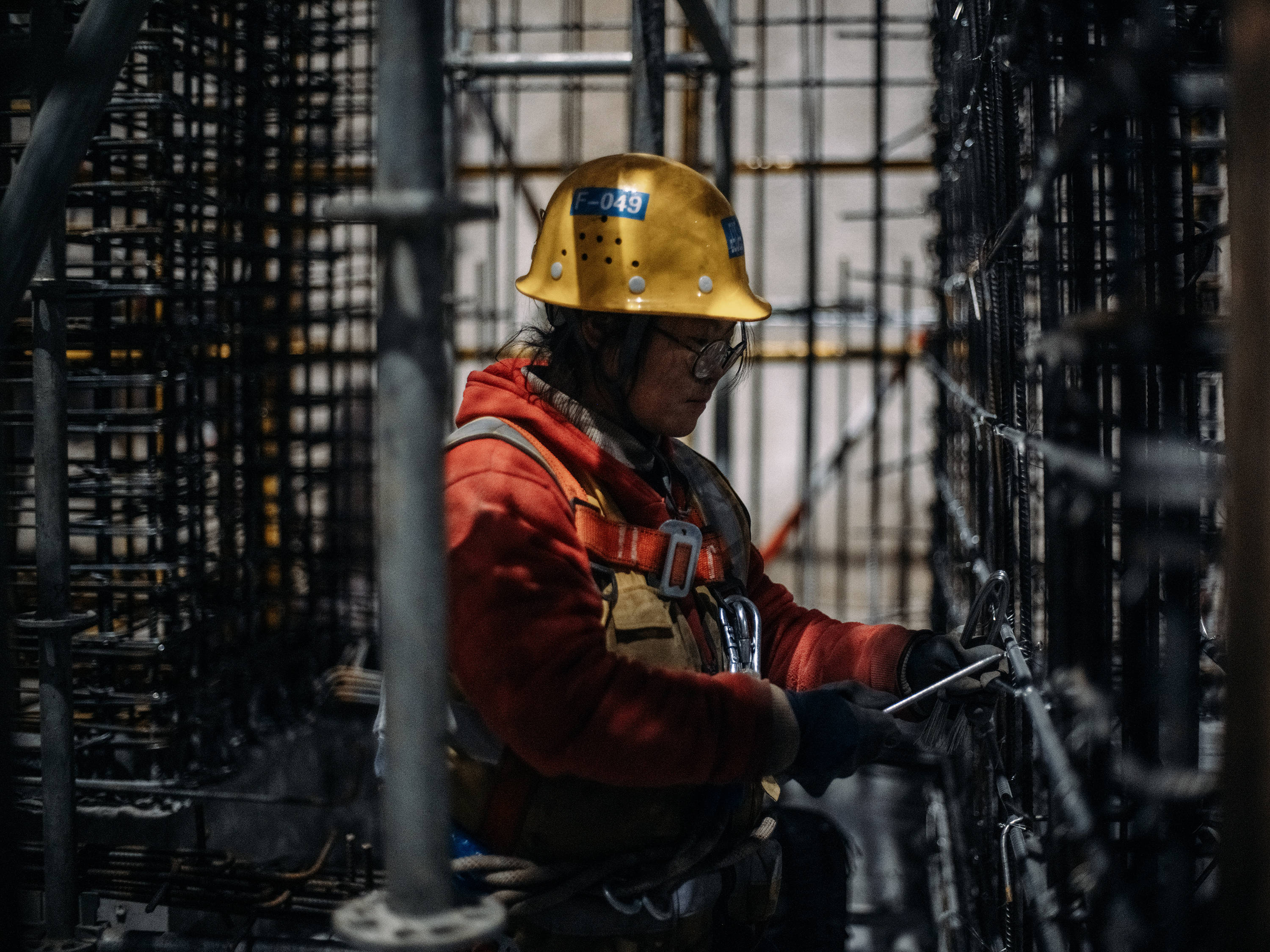 绑的时候大家一起往前走,从一头绑到另一头,像比赛一样,比谁手快。我在工地做钢筋工已经六年了,其实也算一个成手了,但每次干活儿,心里还是在想:别拖后腿。