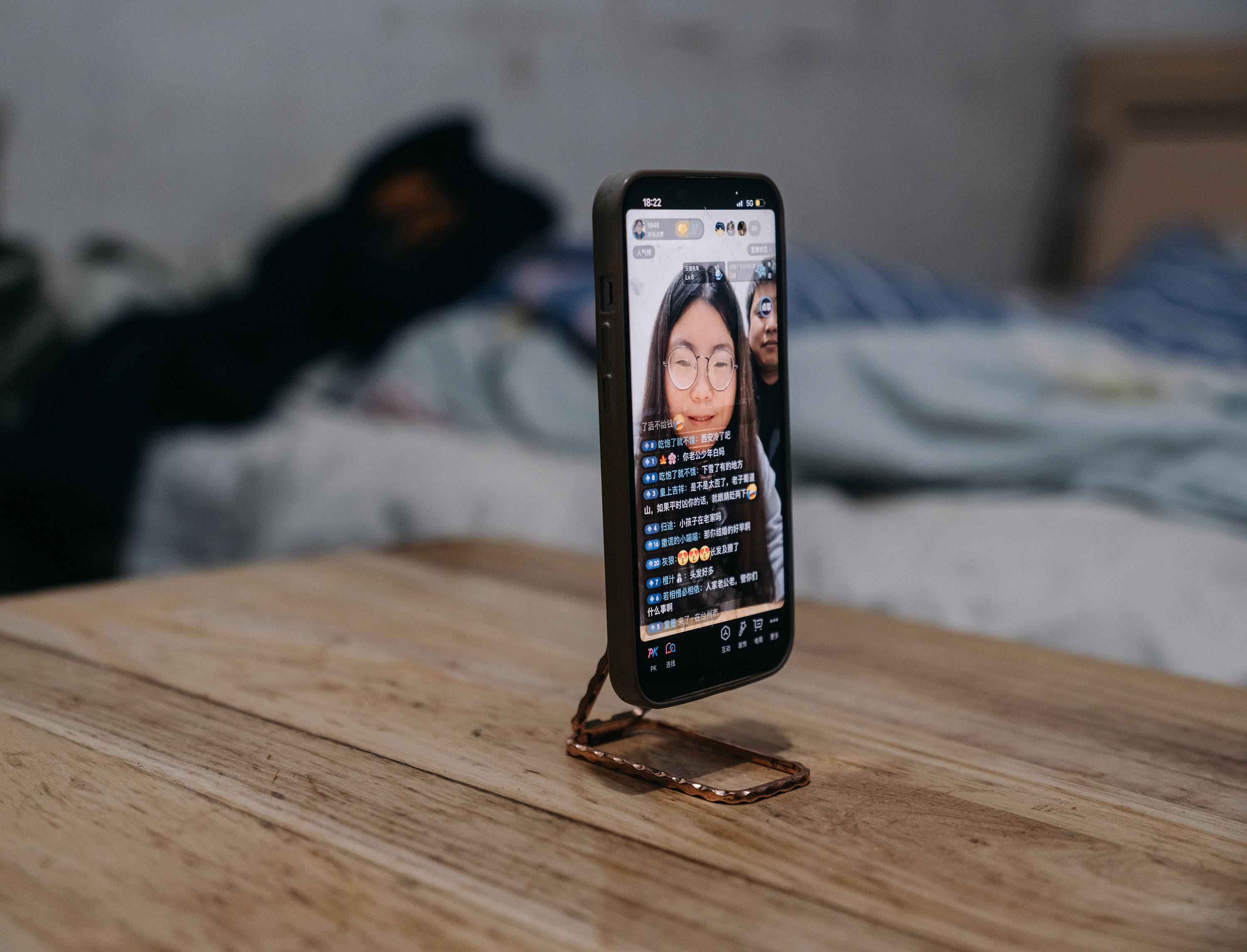 开始有人质疑我,为了流量故意摆拍那种人设,我不知道怎么说。有空也直播,把手机放在盒子上,看着屏幕,人家问一句我答一句,没人说话我就有点慌,容易冷场。有时候吃点东西缓解一下。