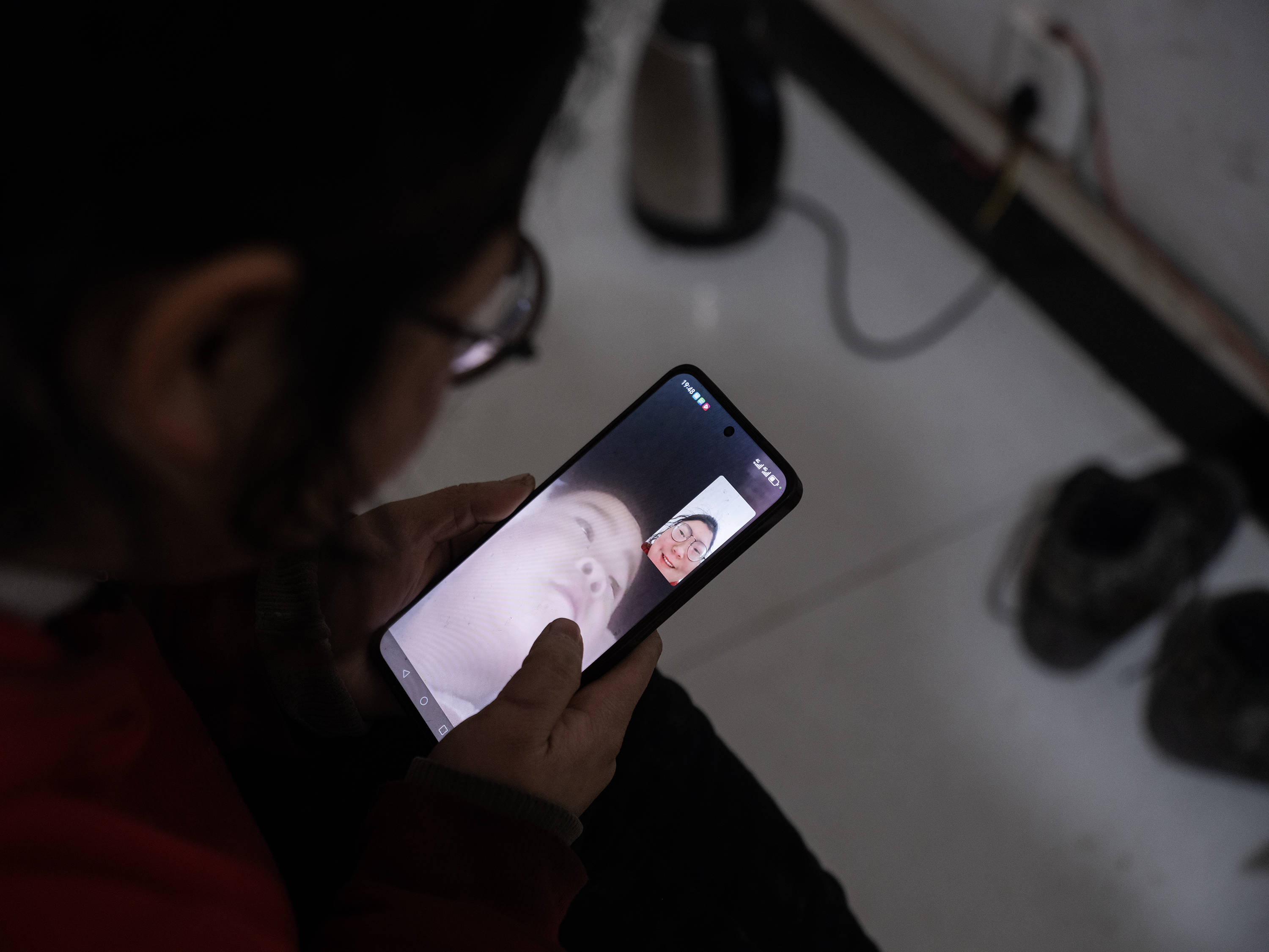 晚上,给老家的孩子打视频电话。