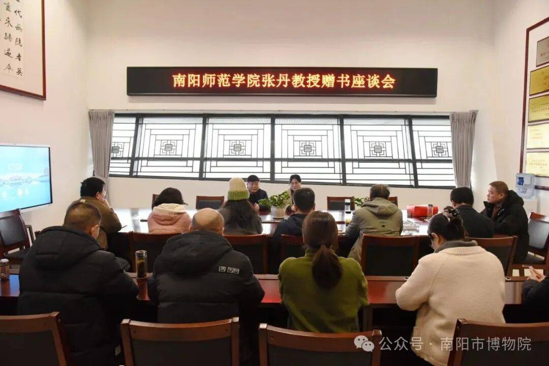 1月26日,“南阳师范学院张丹教授赠书座谈会”在南阳市博物院举行。南阳市博物院党总支书记、院长牛宏成,南阳师院张丹教授、市博物院副院长尹俊敏、黄迎光,副书记周励等相关部室负责人参加。