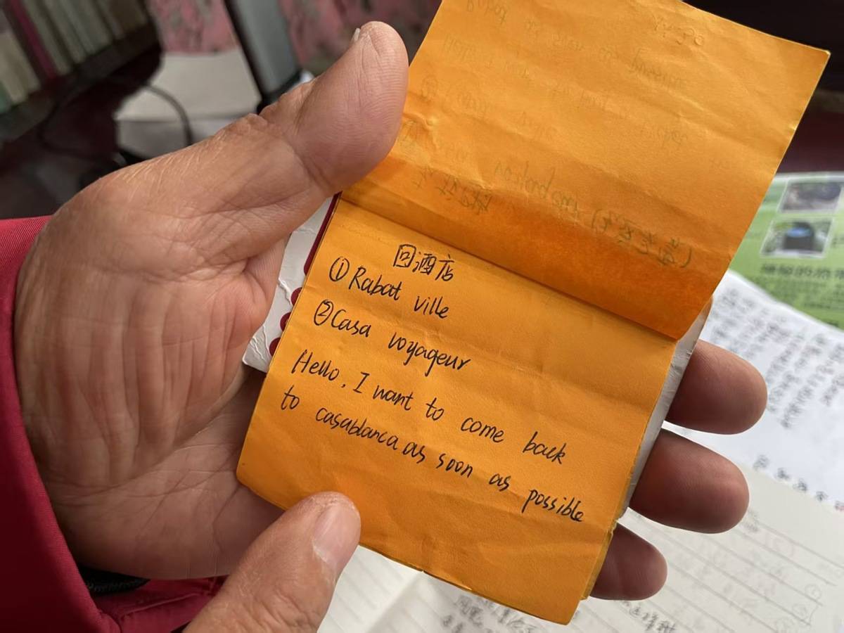 摩洛哥东方酒店的中国工作人员帮他写的便签(受访者供图)