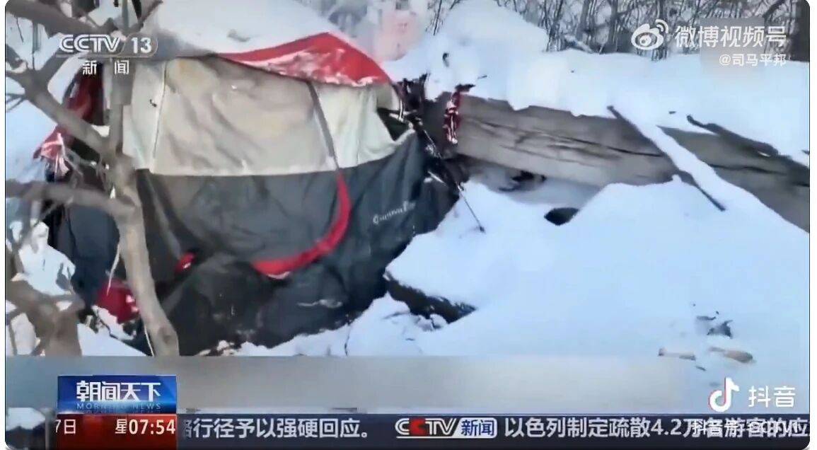 很难想象这是真的,但是这就是事实,这样的严寒中,睡在雪中,有一个单薄的帐篷已经不错了。上千人这样生活。