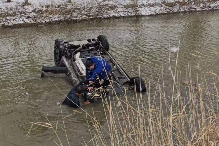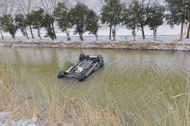 1月20日9时许,响水县室外气温低至-10℃,刚从工厂下夜班的胡小豪(化名)驾车行至响陈路时,因雪后路面湿滑加之操作不当,车辆失控冲入河道中,车身瞬间翻转,倒扣河中。