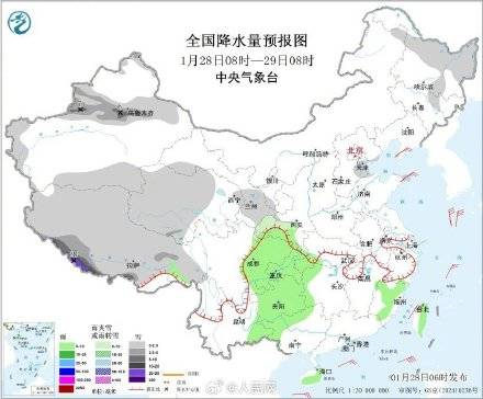 今天(28日)至29日,青藏高原自西向东有一次降温降雪过程,其中,青藏高原西南部沿山地区局地有大暴雪。(中国气象局)