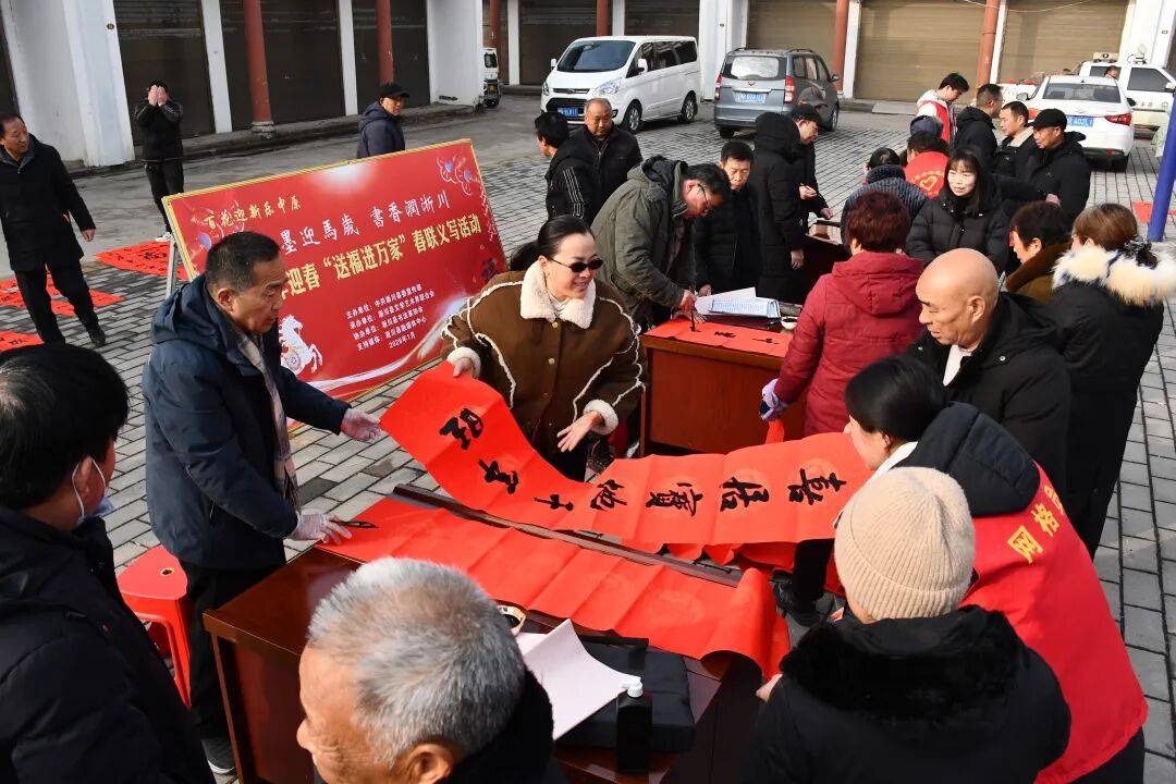 新春将至,年味愈浓,南阳各地广泛开展 “福送万家” 义写春联活动。把红红火火的春联和饱含祝福的 “福” 字送到群众手中。不仅让传统文化在基层落地生根,更让浓浓年味与暖心关怀浸润千家万户,绘就出一幅祥和喜庆的民生画卷。