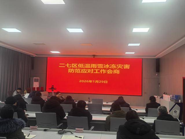1月29日,二七区接连召开低温雨雪冰冻灾害防范应对专题会议,同步印发工作通知,对防范工作周密部署。区政府党组成员胡新生强调,本次天气过程将出现小到中雪(西部中到大雪)、3-4级东北风(阵风6级),伴随5-6℃降温,最大积雪深度2-4厘米(局部5-6厘米),要求各单位摒弃麻痹侥幸心理,坚守底线思维、极限思维。
