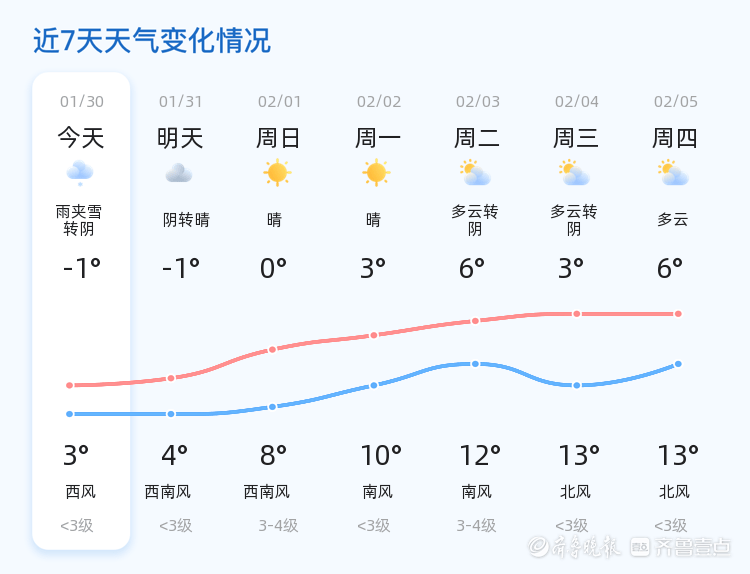 未来三天,济南市天气将呈现逐步回暖的趋势,预计2月1日至2月3日,最高气温将达到8℃,最低气温在-1℃左右。其中,2月1日为晴天,风力有所增强,市民出行需注意防风保暖。特殊天气提醒雨夹雪天气可能导致道路湿滑,建议市民出行时减速慢行,确保行车安全。