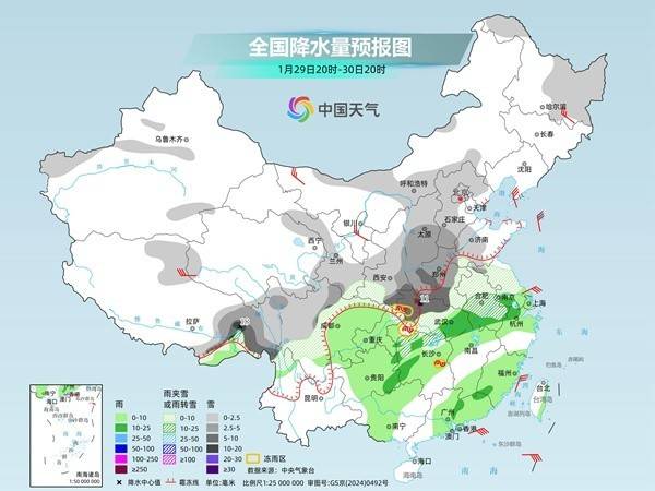 先来看咱们国家的这轮雨雪过程。相比之下,赶在1月尾巴上线的这轮大范围雨雪过程算是“普通”程度了,影响范围虽大,但强度不及1月中旬那场雨雪冰冻。