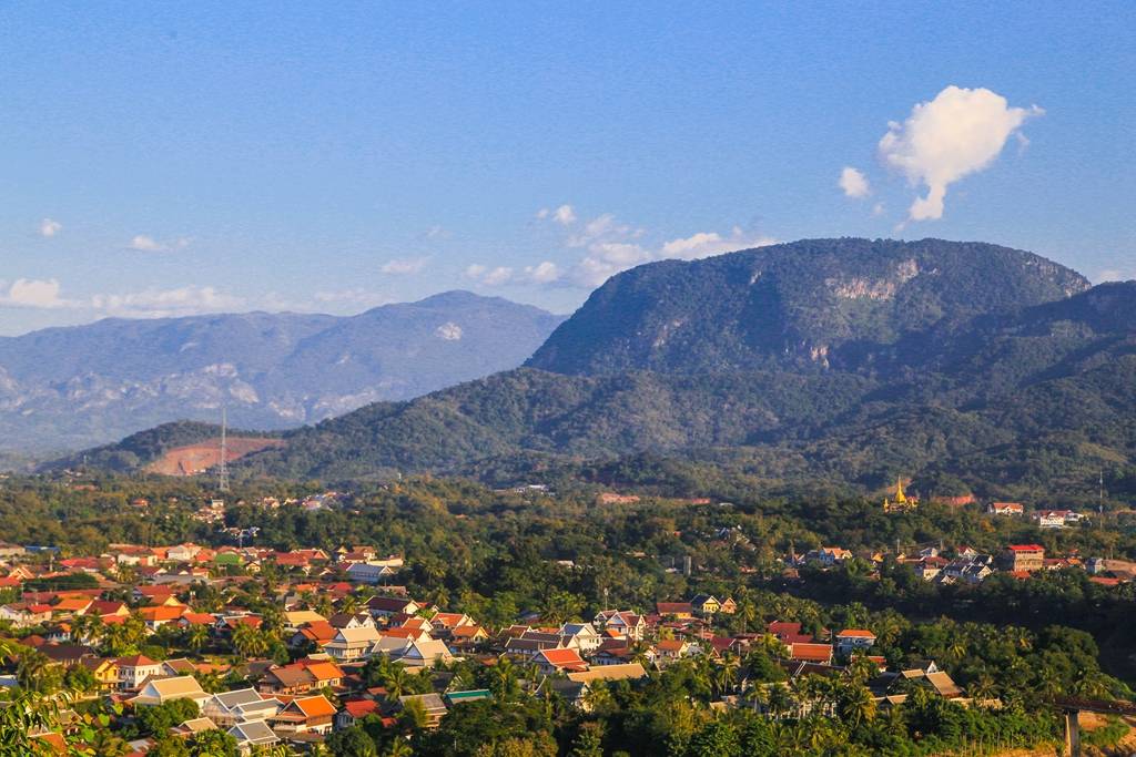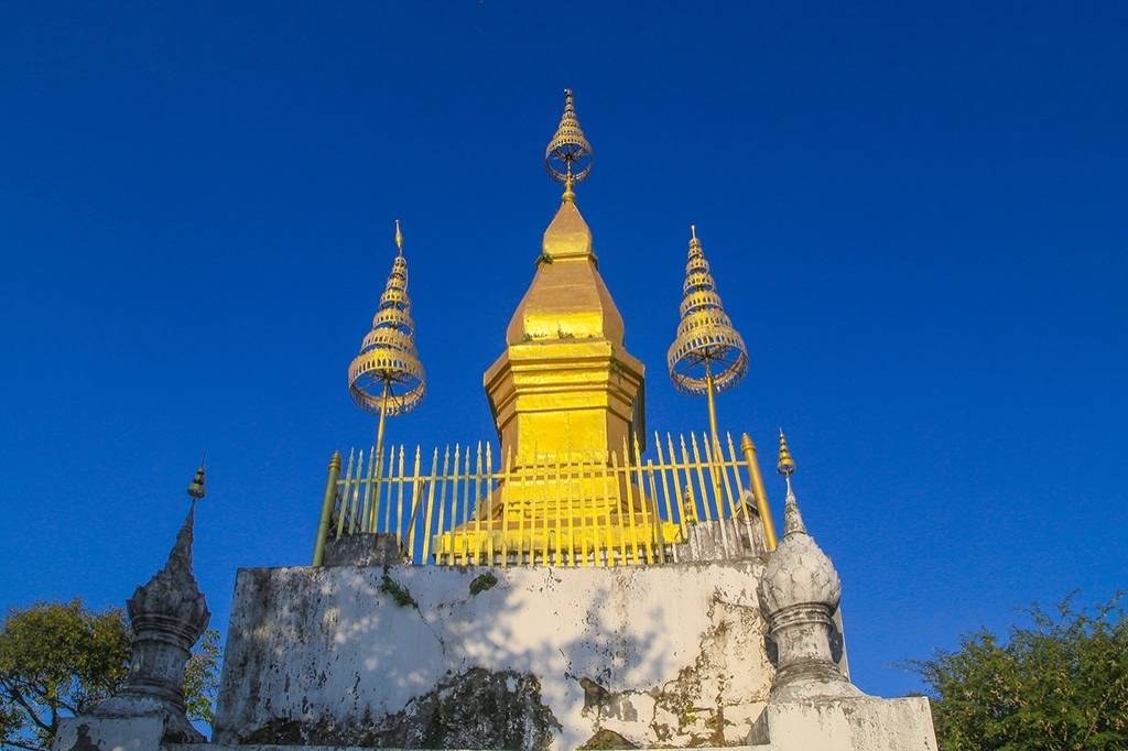 普西山,不过百余仞丘,无巍峨之姿,却如一枚被佛光浣洗过的鎏金舍利,安然嵌在湄公河与南康河交绕的臂弯里。它是琅勃拉邦的灵魂栖处,是一城人心头的精神原乡,亦是坐拥 “亚洲八大日落” 的禅意观台。