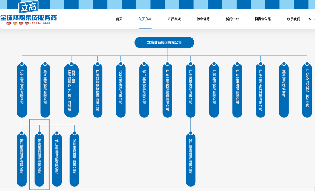 立高食品股份有限公司官网显示,河南奥昆食品有限公司属于立高食品旗下三级子公司,立高食品是一家集烘焙食品原料及冷冻烘焙食品研发、生产、销售于一体的大型股份制上市企业,主要产品包括奶油、水果制品、酱料、巧克力等烘焙食品原料和冷冻烘焙半成品及成品、部分休闲食品。