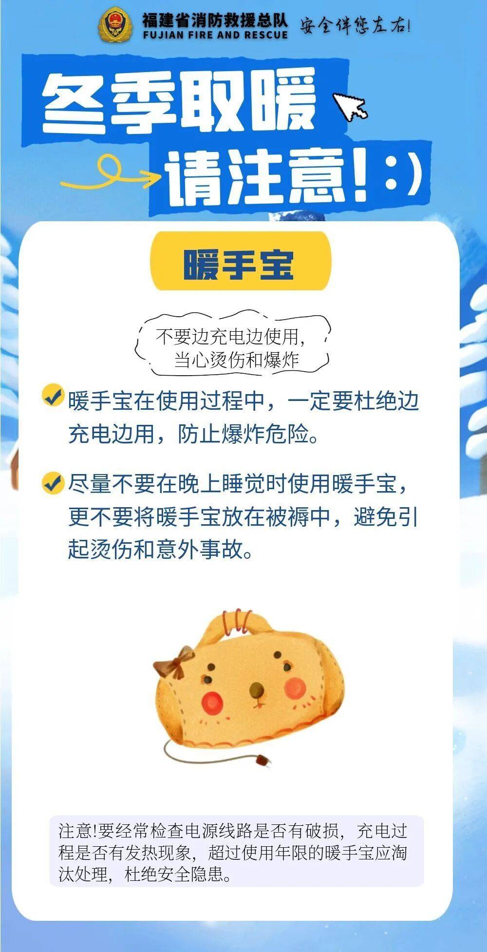 同时,室内取暖注意用火用电安全