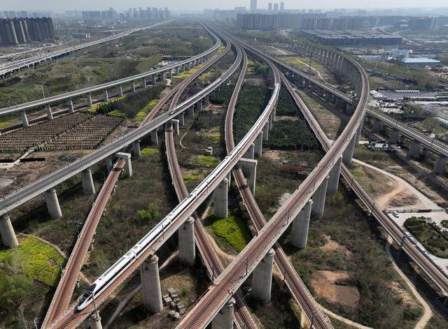 2025年3月31日在河南省郑州市拍摄的纵横交错的高铁线路(新华社)